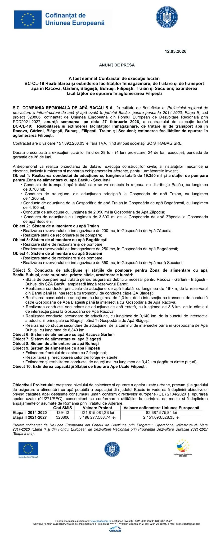 Reading: Anunț de presă S.C. COMPANIA REGIONALĂ DE APĂ BACĂU S.A.