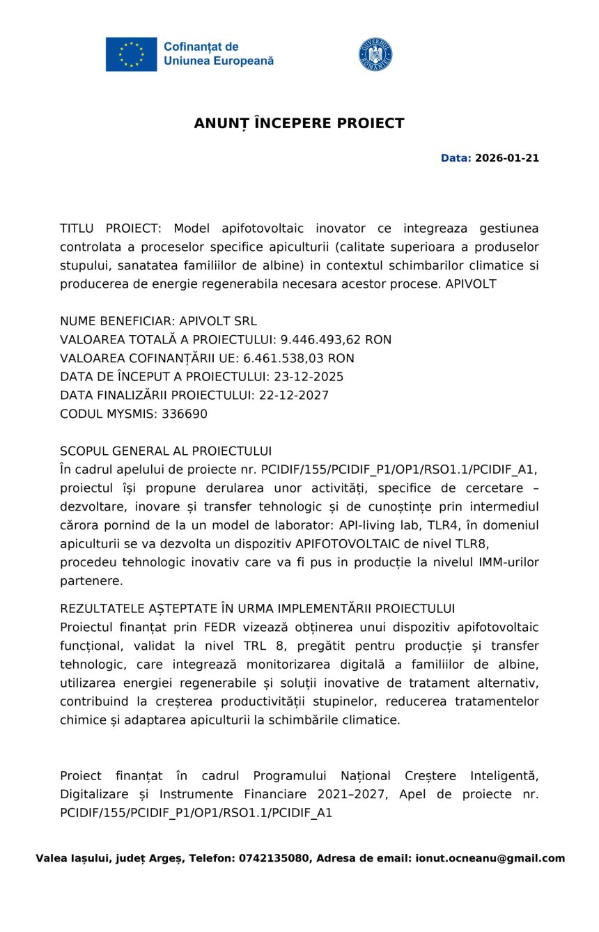 Comunicat de presă APIVOLT SRL