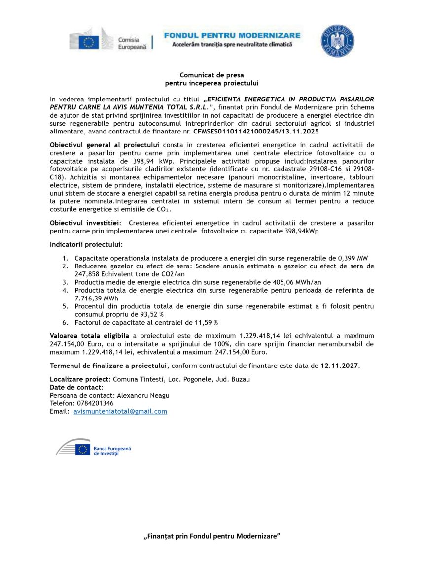 Comunicat de presă AVIS MUNTENIA TOTAL SRL