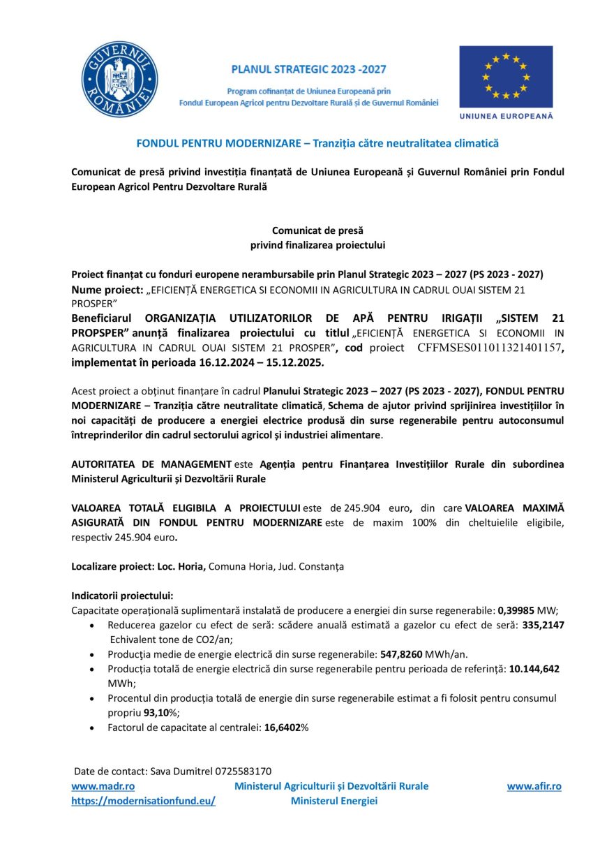 Comunicat presă OUAI - Comunicat de presă OUAI SISTEM 21 PROSPER