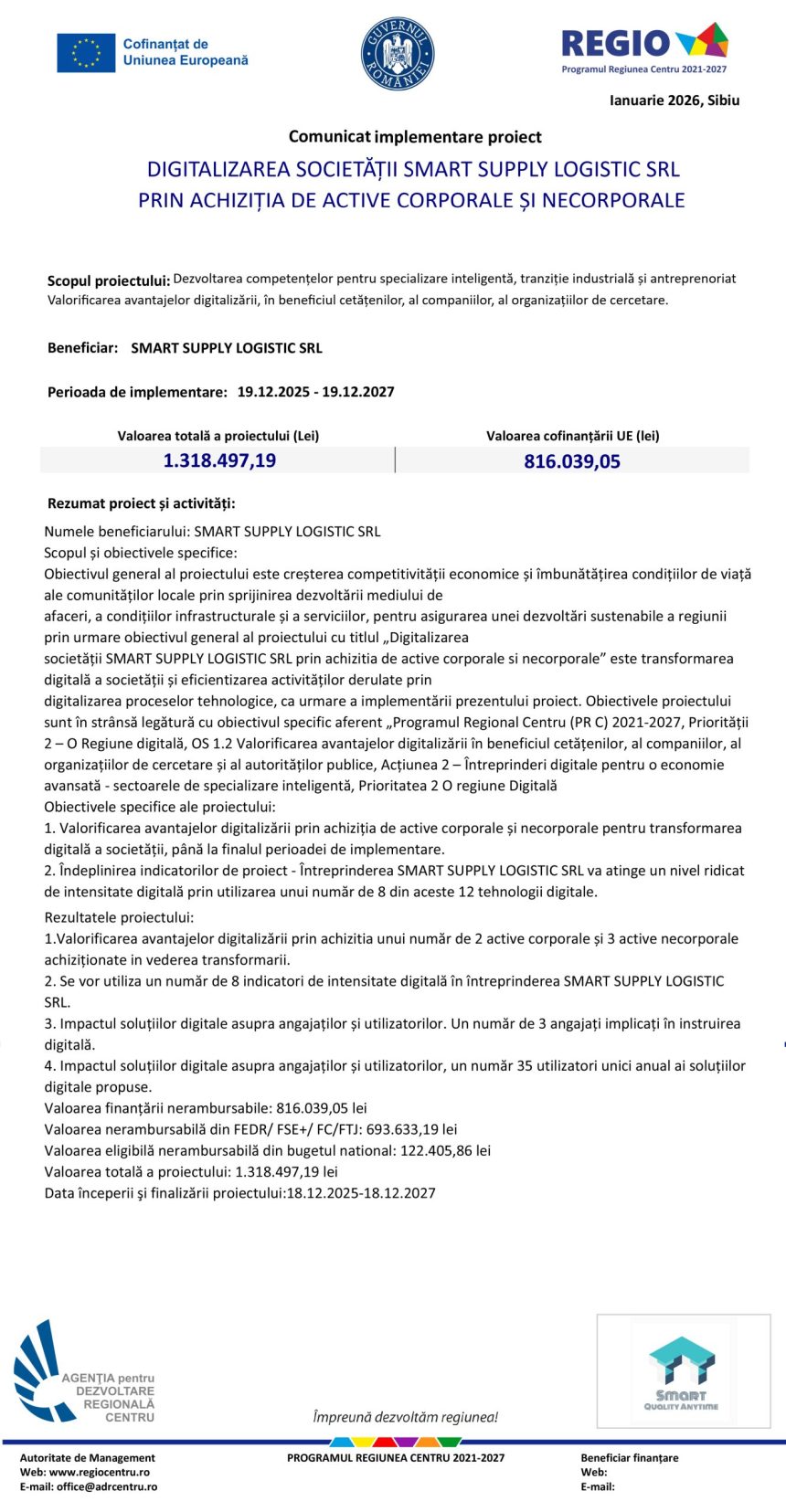 Comunicat de presă SMART SUPPLY LOGISTIC SRL